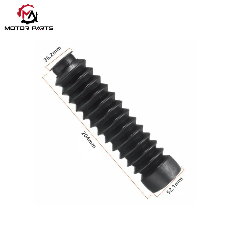Motorcyklens forreste støddæmper-støvdæksel er lavet af meget elastiske og bløde materialer, som effektivt kan dæmpe de subtile vibrationer, der genereres af støddæmperens udvidelse og sammentrækning, og samtidig reducere støjen forårsaget af vibrationer betydeligt, samtidig med at kørekomforten forbedres; Nogle produkter er specielt designet med fortykkede strukturer, som øger vægten med 30 % i forhold til almindelige modeller. De kan stærkt modstå ydre påvirkninger såsom små stenstød og trægrenridser, hvilket giver omfattende beskyttelse til støddæmpere.