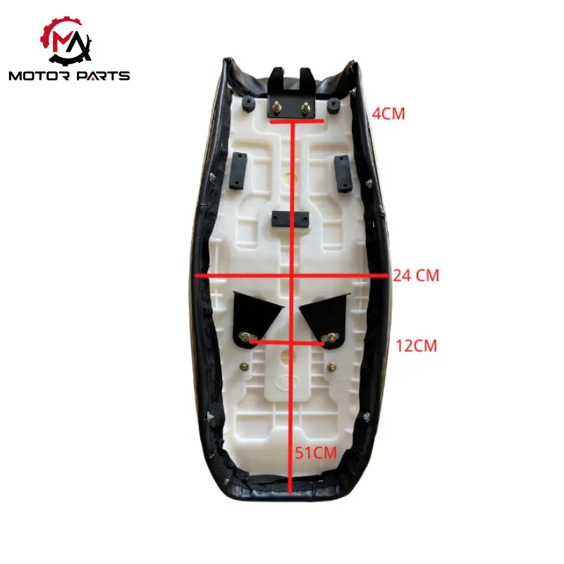 Optimeret bundpladestruktur: Vi tilbyder to muligheder: ABS-teknisk plastbundplade (fortykket 8 mm) og klassisk stålpladebund. Som en højkvalitets CG125 motorcykelsædepudefabrik har vores ABS-bundplade en fuldt vandtæt struktur, og med anti-skridpuderne i bunden kan den klæbe godt til stellet selv på ujævne veje.