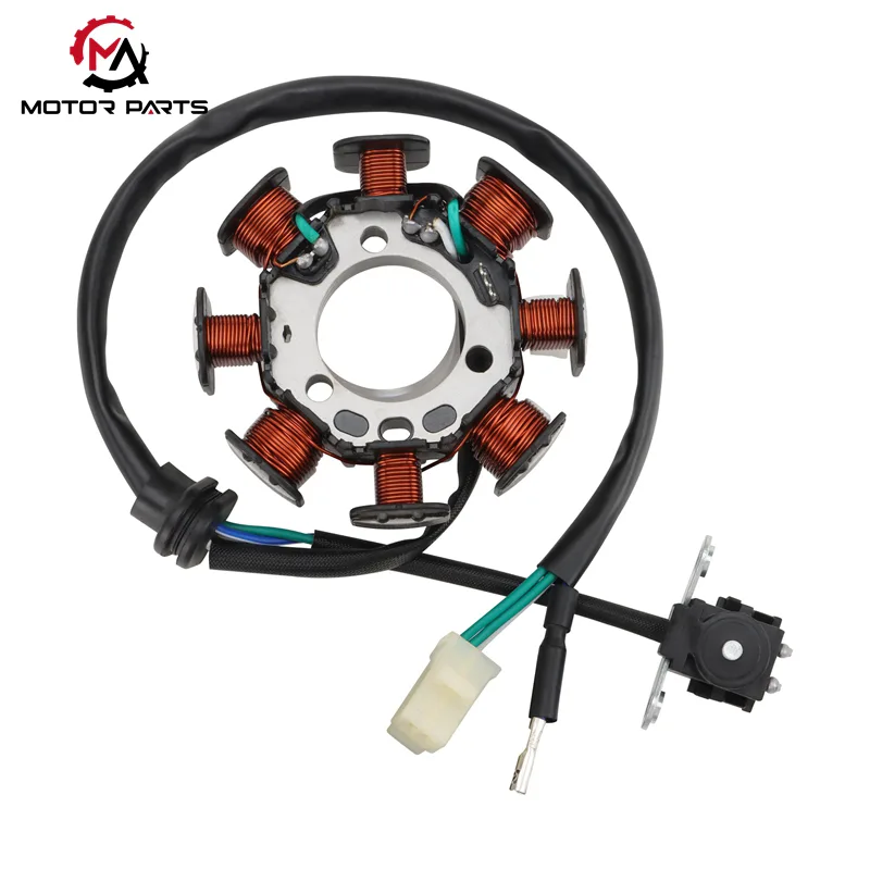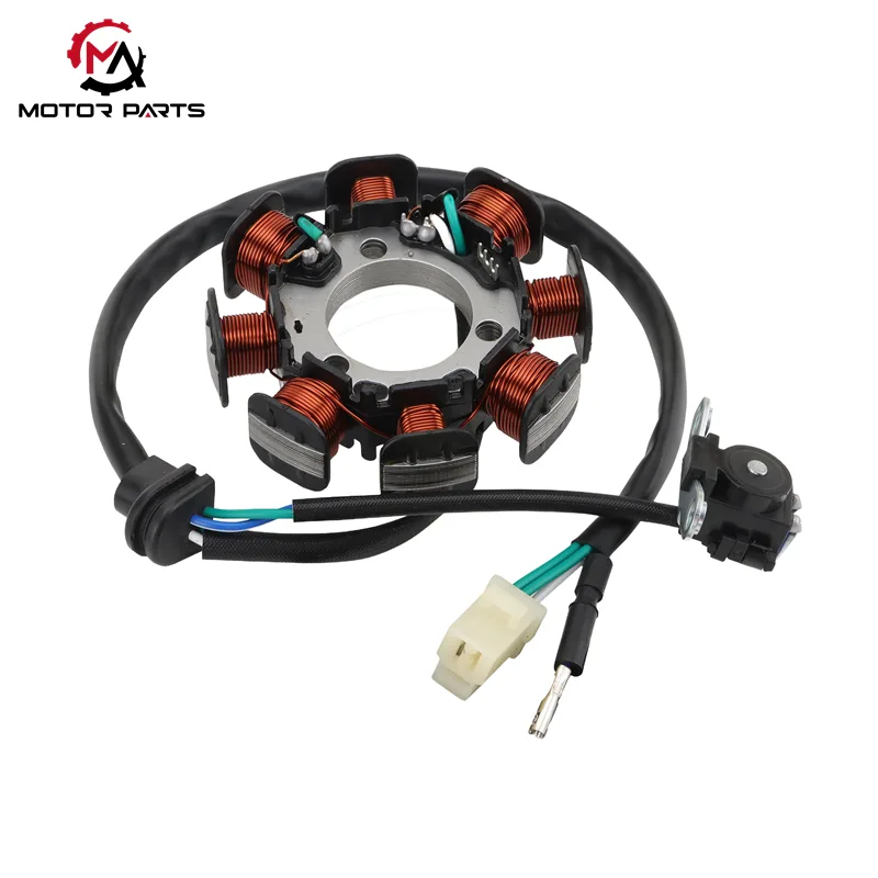 Betjeningen af CRF150F Motorcykel Magneto Coil er baseret på Faradays lov om elektromagnetisk induktion. Når motoren kører, driver krumtapakslen rotormagneten til at rotere med høj hastighed og danner et dynamisk vekslende magnetfelt. Statorspolegruppen skærer magnetfeltlinjerne for at generere vekselstrøm, som derefter distribueres til tændings-, opladnings- og tidsstyringssystemerne for at realisere det koordinerede arbejde af motorcyklens elektriske komponenter.