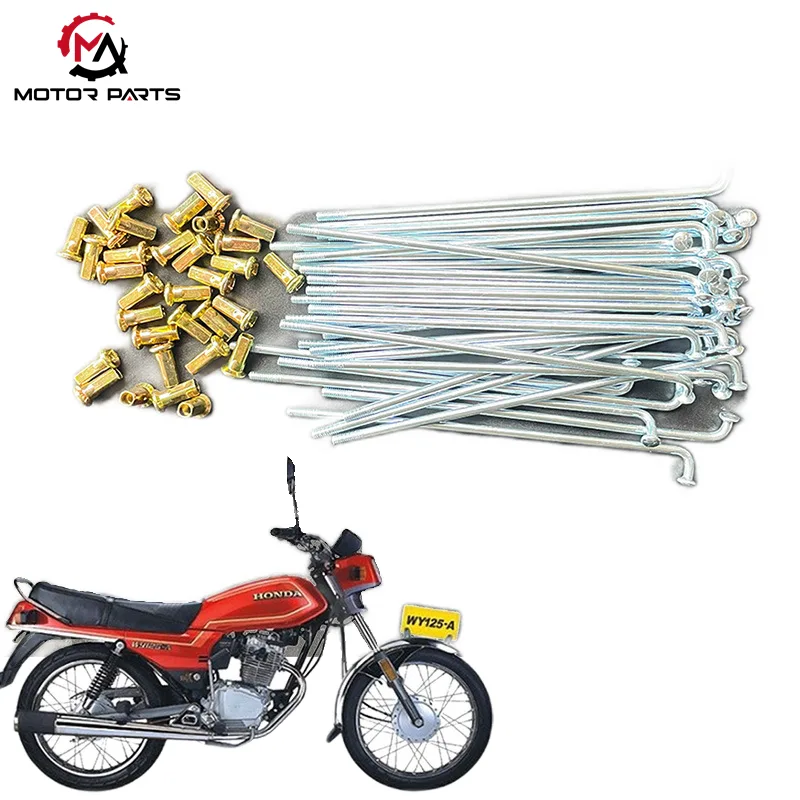 Max handeltilbyder højstyrke Honda WY125 motorcykeleger fra Kina, specielt designet til motorcykelhjul, balancerer holdbarhed og letvægtsydelse. Hver eger gennemgår en særlig behandling for at sikre en sikker forbindelse mellem navet og fælgen, hvilket forhindrer bøjning eller brud selv under langvarig belastning og udfordrende vejforhold.
