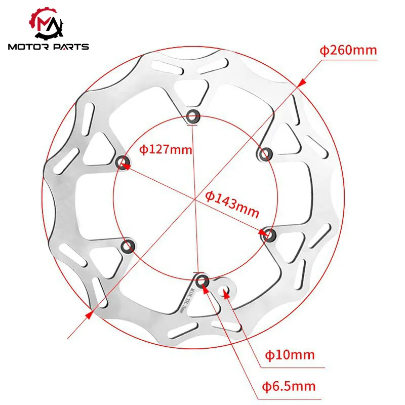 Ensartet 260 mm diameter: Mainstream-modeller af bremseskiven anvender ensartet en 260 mm diameterspecifikation. Et typisk eksempel er modellen 77709160000, som er fuldt kompatibel med køretøjer i KTM MX/Enduro-serien produceret fra 2003 til 2025.