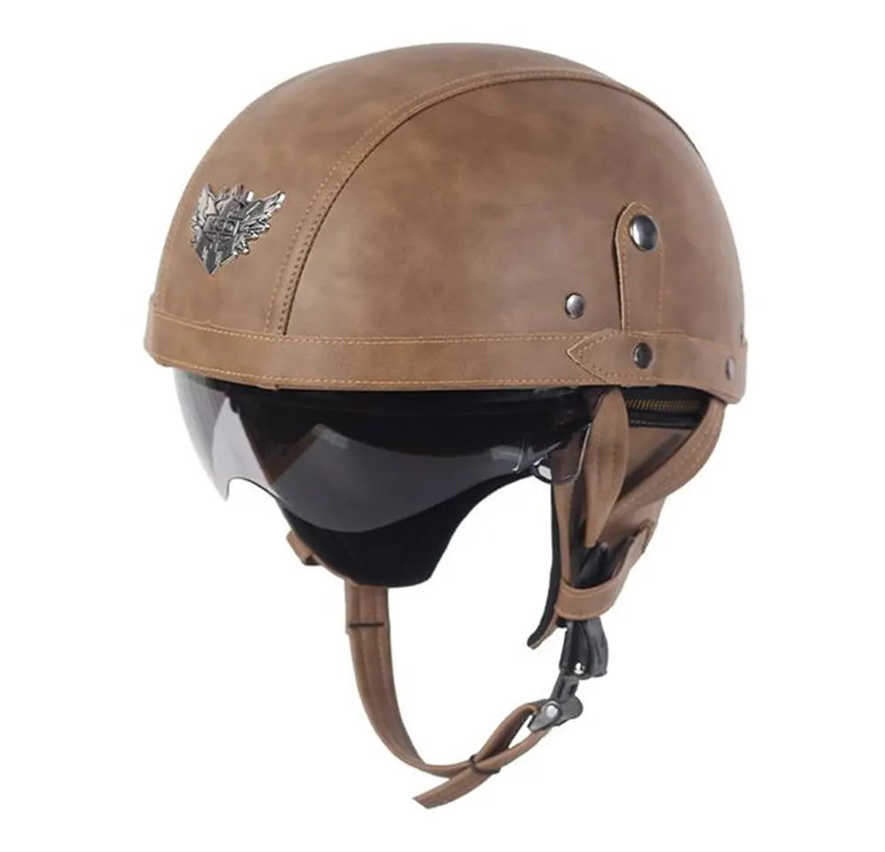 Motorcykel Halv Face Hjelm Læder Med beskyttelsesbriller