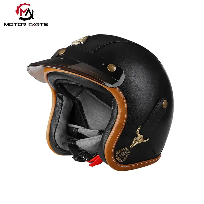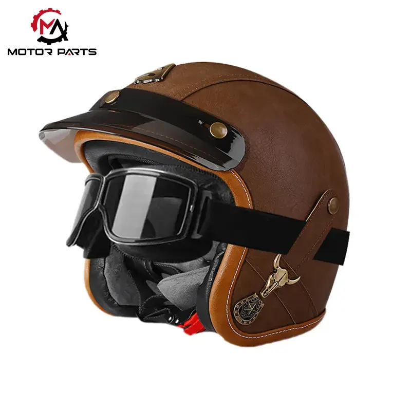 China Motorcycle Half Face Helmet Leather With Goggles er et retro-stil halvhjelm produkt fra Manufacturer Max Trading, der kombinerer sikkerhedsbeskyttelse og stilfuldt design, velegnet til ryttere, der værdsætter både individualitet og praktisk.