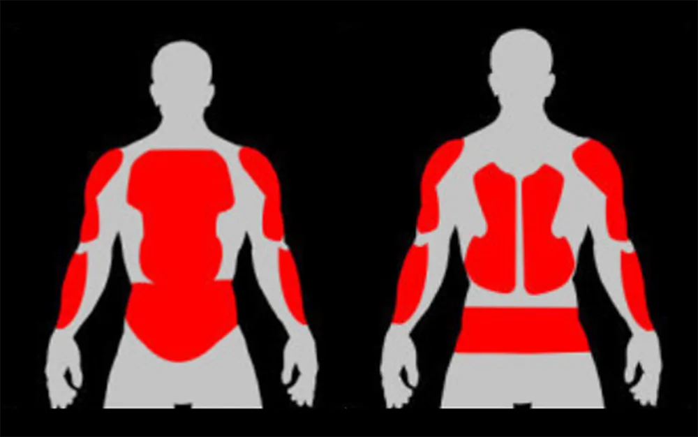 Højstyrkekompositter: Motorcykelridende overkropspanser konstrueret til at modstå højhastighedspåvirkninger.Honeycomb Energy Absorption: En specialiseret indre struktur designet til at sprede kinetisk energi hen over overfladen og minimere lokaliseret traume.Fulddækkende afskærmning: Strategisk beskyttelse af skuldre, albuer, bryst og ryg.