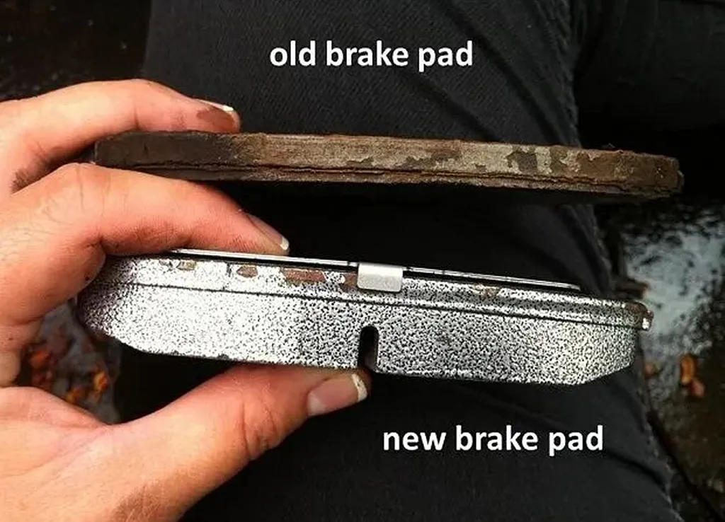 1. Vi kan afgøre, om udskiftning er nødvendig, ved at observere, om tykkelsen af bremseklodserne opfylder udskiftningsstandardlinjen, som vist på figuren. Når sliddet når indikatorrillens bundlinje, skal det udskiftes. Men på grund af manglen på internationale standarder for kabelåbninger til bremsebelægningsindikatorer, har forskellige mærker af bremseklodser forskellige slidsikkerhedslinjer. Derfor er det nødvendigt at henvise til produktmanualen for udskiftning inden for sikkerhedsområdet, når det er nødvendigt.
