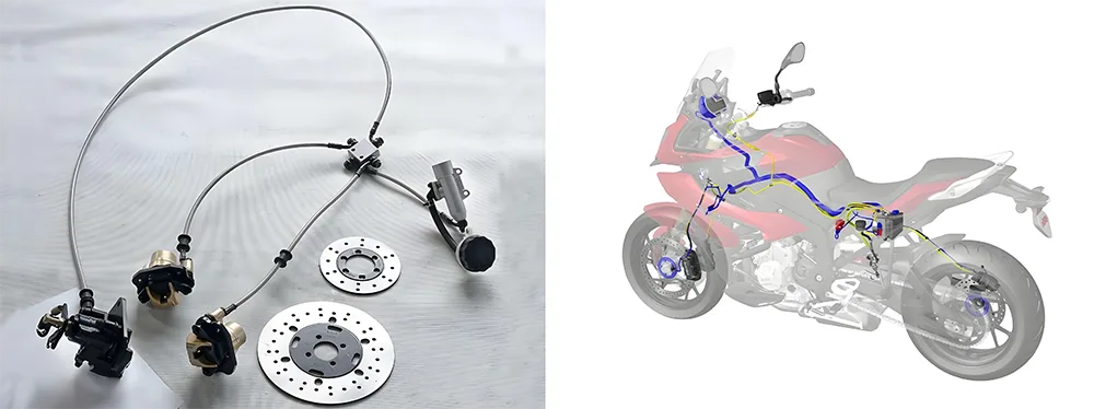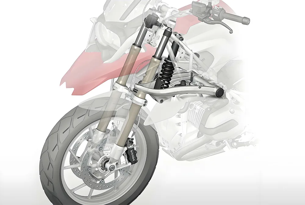 Sådan administrerer du direkte din cykel - alt hvad du holder fast for at styre og bringe den til at stoppe. Foran har du styrestammen og styret (eller 'barer') - hvor du griber og styrer det forreste dæk. Så er der kontrolhåndtagene: dit bremsehåndtag (foran) og koblingshåndtag (venstre hånd) plus bremsepedalen (højre fod, normalt til bagdækket). Kabler og forbindelser videregiver dine bevægelser, mens den virkelige stoppevne kommer fra bremseopsætningen - calipers, der presses ned på bremseotorer (eller trommer på nogle old -school -cykler). Og ABS (anti-lock bremsesystem), den vigtige sikkerhedsfunktion, der forhindrer hjulene i at låse op, når du virkelig skal bremse hurtigt. Hvis du griber den, træder på den eller læner dig på den for at kontrollere cyklen, er det en del af denne opsætning.